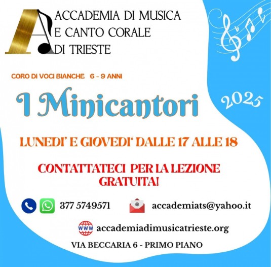 Il coro di voci bianche I Minicantori opera all'interno dell'Accademia di musica e canto corale di Trieste ed è composto da giovanissimi coristi uniti dalla passione per la musica.
